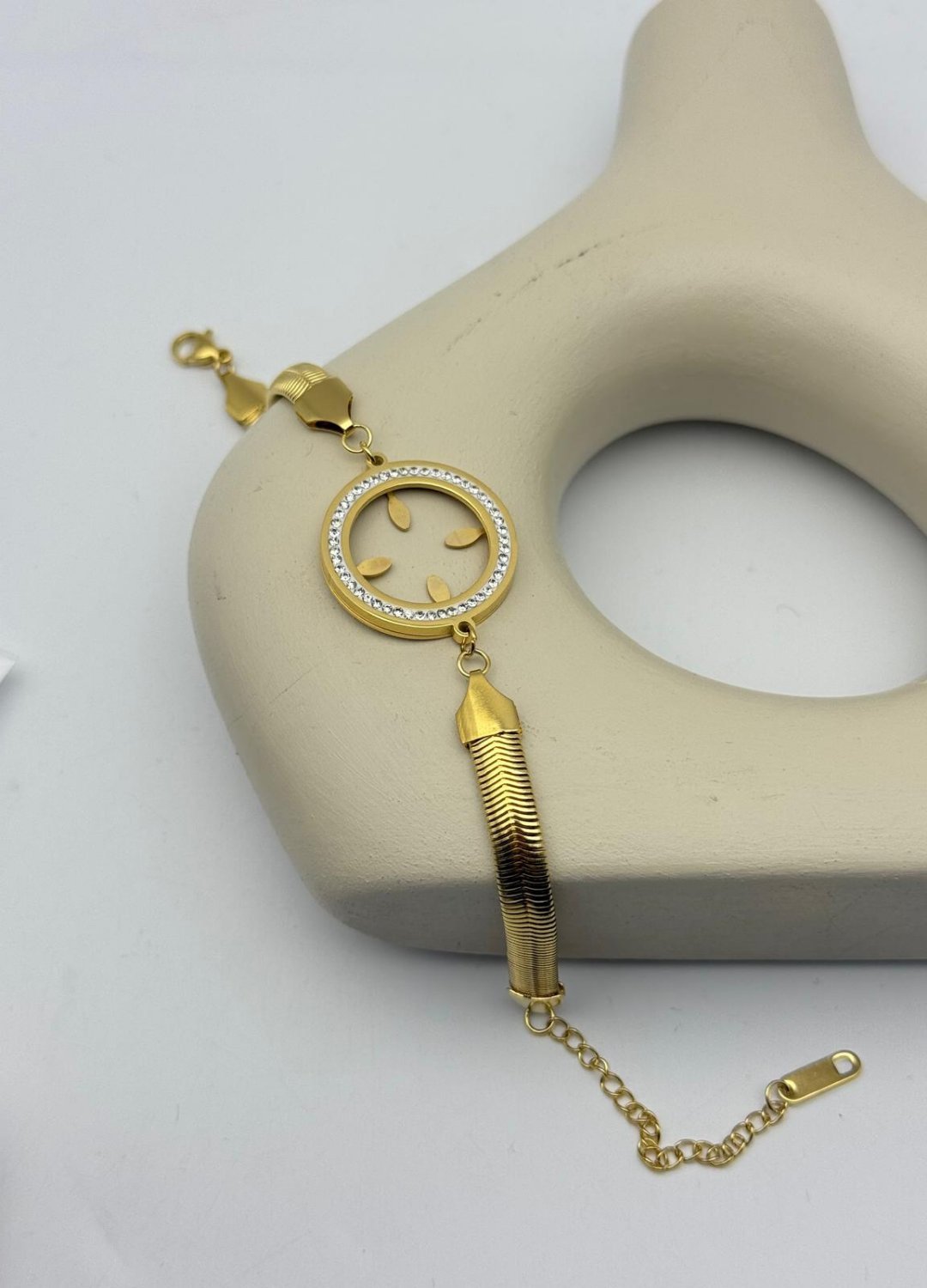Çelik Gold İtalyan Kordon Taşlı Çeyreklik Bileklik
