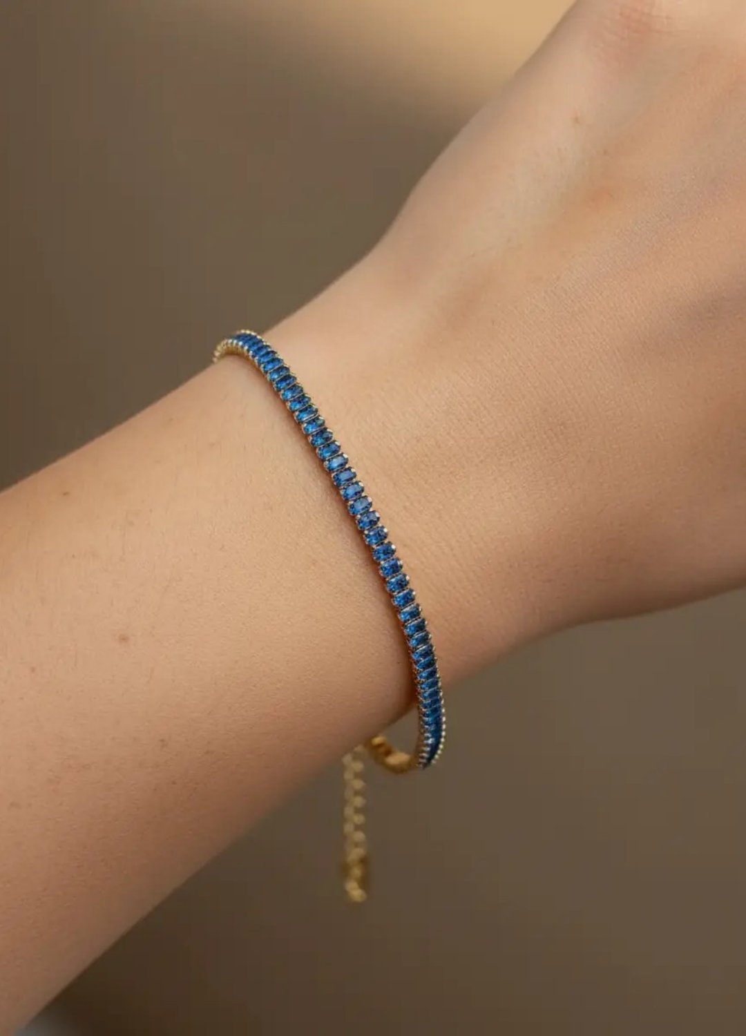 Çelik Gold Parlak Mavi Baget Taşlı Su Yolu Bileklik