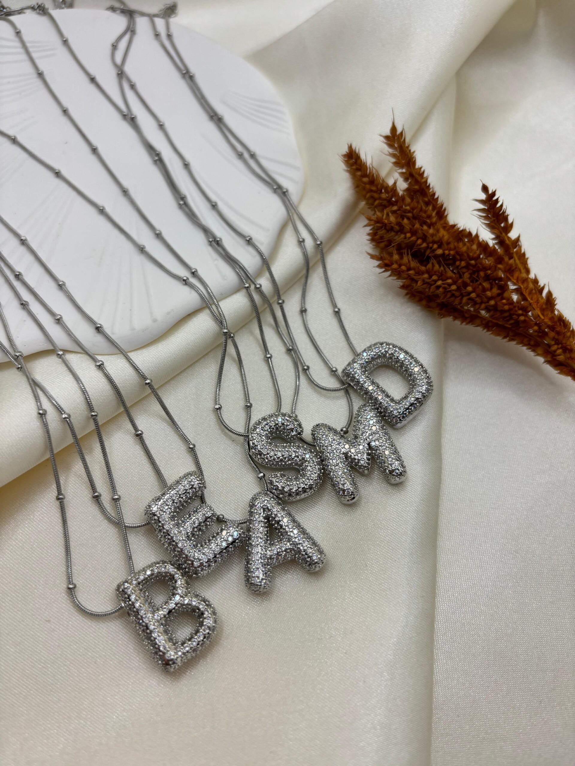 Çelik Gold Taşlı Balon Harf Kolye