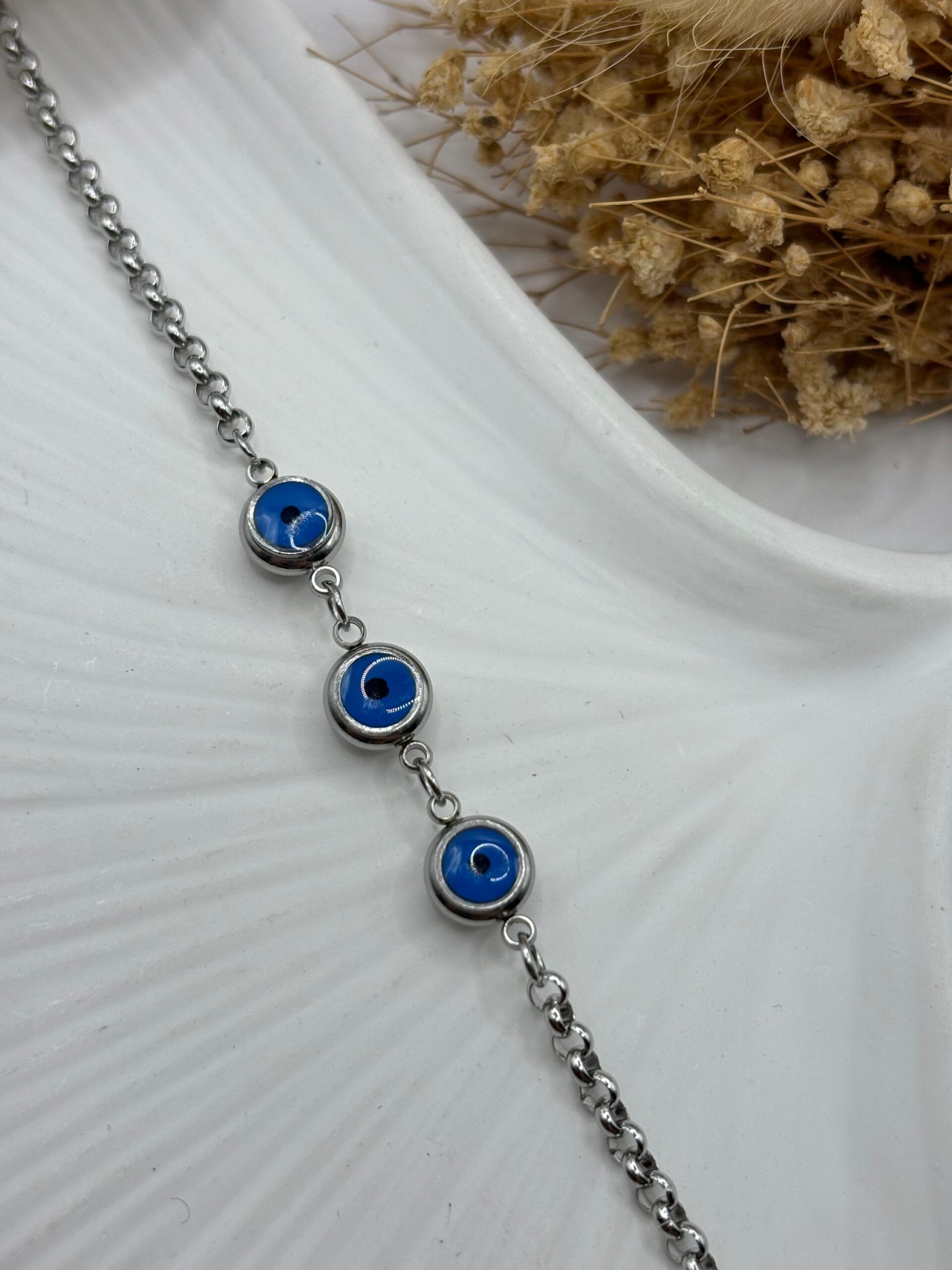 Çelik Nazar Boncuklu Bileklik