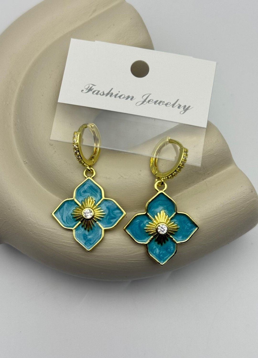 Vip Gold Taşlı Yonca Sallantılı Küpe